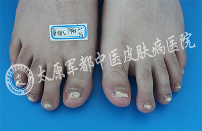 ——来到我们太原肤康中医皮肤病医院是第几次了?就是来做灰指甲治疗。