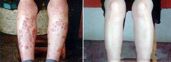 我患湿疹多年(从我记事的时候好象就有)。厉害时,起初腿部皮肤起小丘疹,严重时发展成渗液、干燥、结疤、粗糙肥厚与裂口,并伴着钻心的痒,搔得血迹斑斑,特别夜里瘙痒得难以入睡。白天又不能好好的干活,年年治疗,好了又反复,一直不能治疗。我真担心就这样持续终生,这会使我的人生增加很多痛苦。