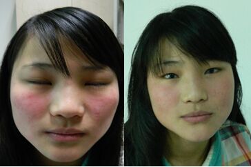 治疗:4月22日,葛小姐在舅妈的陪伴下到太原肤康中医皮肤病医院就诊,确诊为过敏性皮炎,立即接受中西医活化脱敏治疗,当天症状就减轻了,脸部红肿随之消退,5天后恢复正常肌肤。