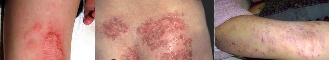 湿疹虽有上述的共同临床表现,但不同部位的湿疹,其皮损形态也有一定的差异。如外耳道湿疹易伴发真菌感染,乳房湿疹常见于哺乳期妇女,常有皲裂而伴疼痛。肛门、阴囊湿疹常因搔抓、热水皂洗而至急性肿胀或糜烂。小腿部湿疹常致溃烂等。这些部位湿疹病程慢性,可长达数月或数年,也可因刺激而急性发作。