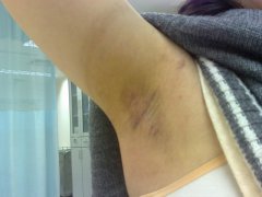 激光治疗利用激光对腋下汗毛孔进行炭化、封闭、烧伤面积大、术后痛苦大、留下大疤痕,疗效又差,无法治疗。